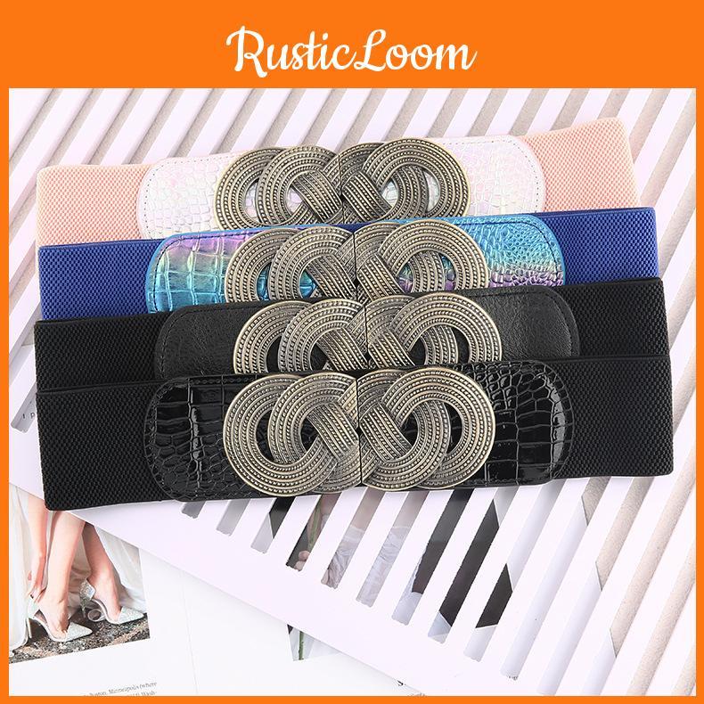 Trendy Retro Wide Waistband Women's Fashion Accessory Elastic Belt Alloy Buckle