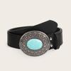 Elevate your everyday outfits with this stylish and versatile women's belt. Made from high-quality faux leather, this belt is not only durable but also adds a touch of sophistication to your look. The smooth alloy buckle features a unique oval shape with a round blue gemstone in the center, adding a trendy and elegant touch to the design.