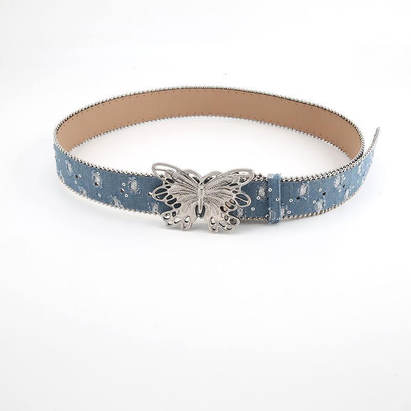Ladies Canvas Belt 2023 New Summer Smooth Buckle Butterfly Decor Leather Belt For Jeans Stylish Korean Fashion 103cm