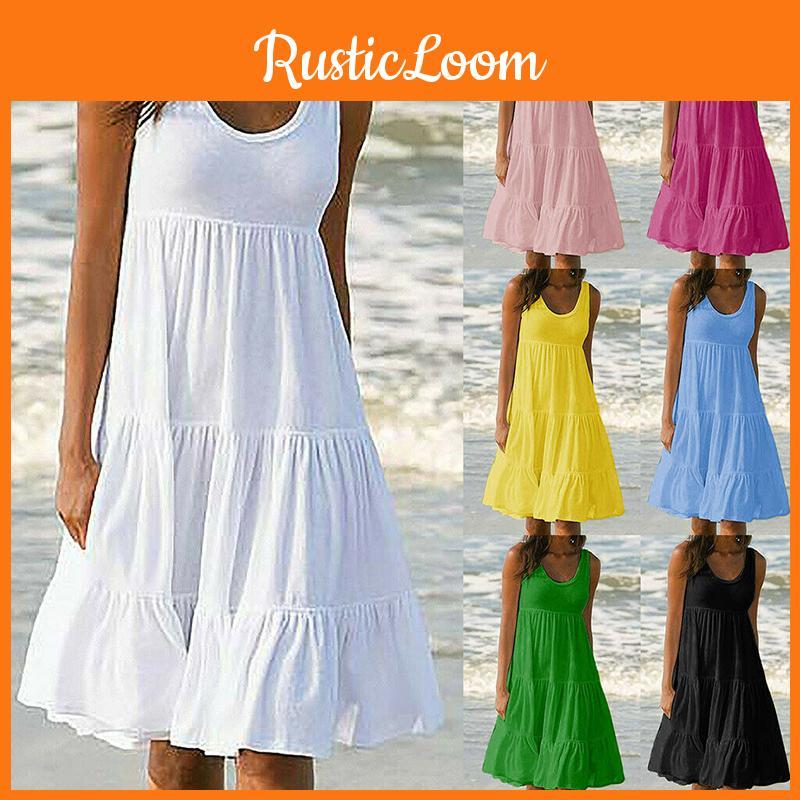 Stylish Women's Holiday Summer Solid Sleeveless Party Beach Loose Short Dress Sundress For Effortless Elegance