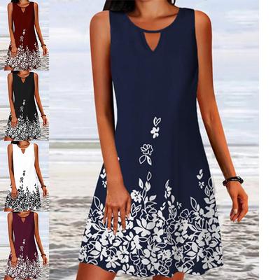 Sommerkleid für Damen, kurzes Kleid, Strandkleid für Damen, Blumenmuster, Rundhalsausschnitt, ärmellos, lässig, lockeres Trägerkleid