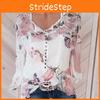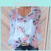 Women Casual Floral Printed Buttons T-Shirt Ladies Chiffon Irregular Tops Blouse