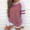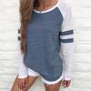 Womens Casual T-shirt Long Sleeve Striped Fashion Blouse Tops Shirt Plus Size