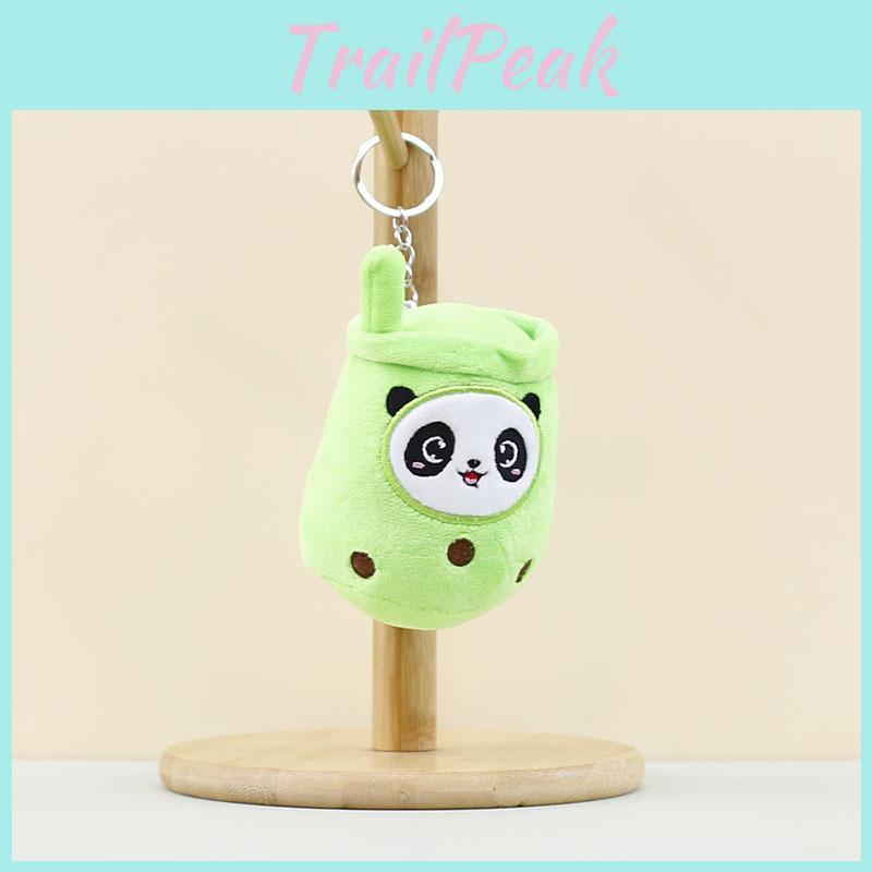 Niedlicher Panda-Plüsch-Teetassen-Schlüsselanhänger, farbenfrohes Stofftier, Hängedekoration