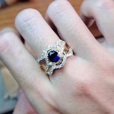 Eleganter königsblauer geometrischer Zirkonring für Damen Vielseitig verstellbares offenes Fingerdesign