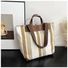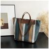 Large Stylish Color Block Striped Canvas Tote Bag For Women In Blue Black Or Khaki