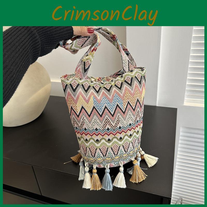Trendy Ethnic Inspired Large Capacity Bucket Bag 2023 Fashion Striped Women's Handbag
