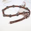 Introducing a new Bohemian waist chain that exudes a retro ethnic style and complex craftsmanship. This belt is made of high-quality synthetic leather and features a unique design with ethnic elements embedded, which can elevate the level of any clothing, especially when paired with jeans or skirts.