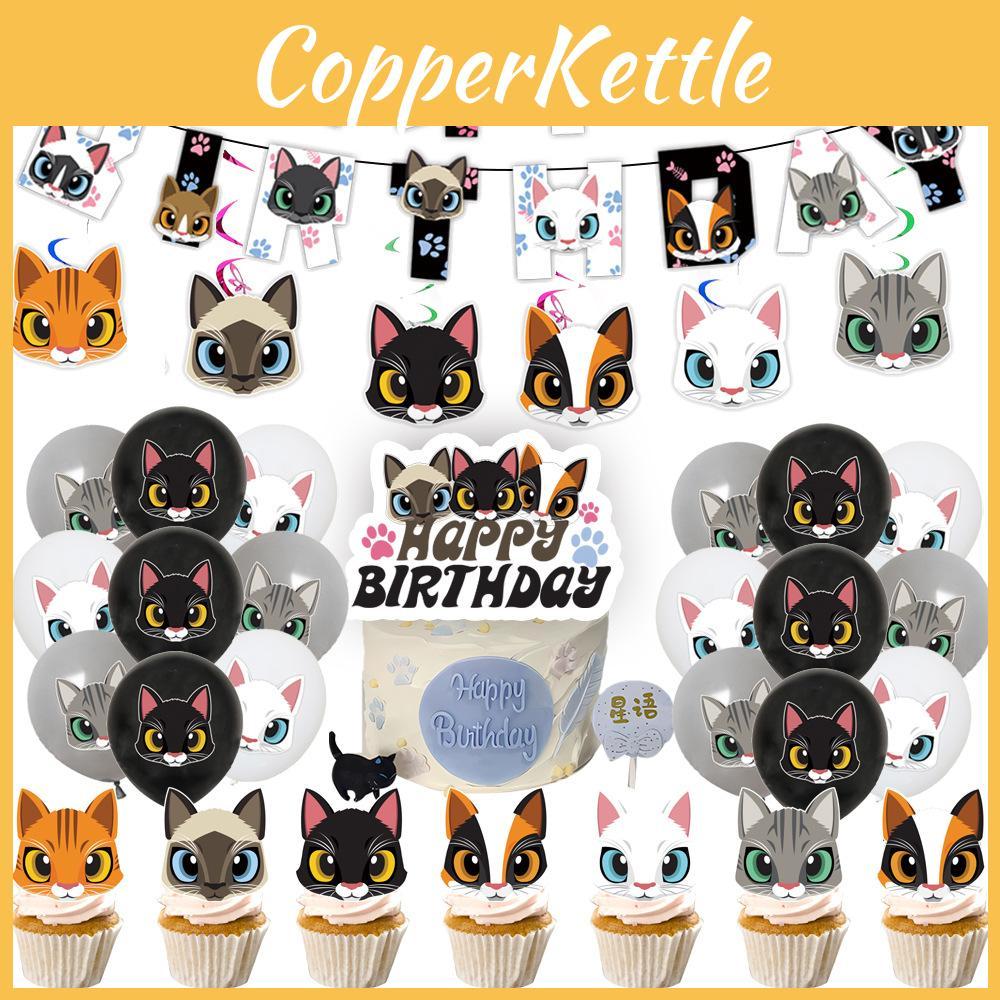 Niedliches Katzen-Geburtstagsparty-Set enthält ein buntes Papierbanner, das in großen fetten Buchstaben "Happy Birthday" liest.. Das Banner ist aus hochwertigem Karton gefertigt und hält während der gesamten Dauer Ihrer Feier.. Sie erhalten außerdem einen großen Tortenaufsatz aus Papier, der perfekt für Ihre Geburtstagstorte geeignet ist.. Zusätzlich enthält die Packung ein Set aus 24 Papier-Cupcake-Toppern, jeder mit einem entzückenden Katzendesign.. Sie erhalten außerdem einen Satz mit 18 Latexballons in 4 verschiedenen Farben.: schwarz, weiß und grau. Sie können auch Party-Spiralen als Dekoration erhalten.. Dieses Set enthält 6 Hängekarten und 6 einzelne Spiralen in zwei verschiedenen Farben.. Man kann diese Spiralen an der Decke oder an den Wänden aufhängen, um eine lustige und verspielte Atmosphäre zu schaffen.