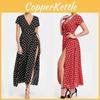 Elegant Women Polka Dot Boho Ruffle Maxi Beach Dress With Square Neckline