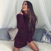 Eleganter Damen Warmer Strickpullover Mini Kleid mit Rollkragen Grober Pullover Top