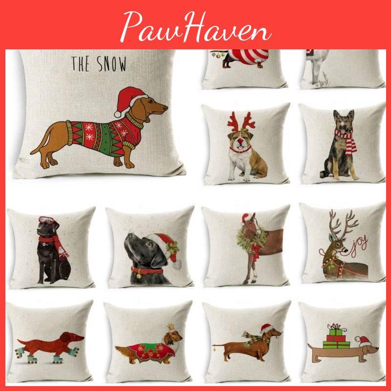 Beautiful 18'' Dachshund Printed Christmas Linen Pillowcase For Festive Home Accents