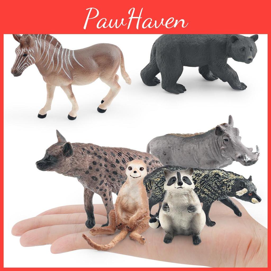 Diese realistische Tiersammlungsfiguren bestehen aus PVC und stellen Wildtiere dar, darunter Hyäne, Leopard, Warzenschwein, Afrikanische Wildkatze, Waschbär, Schwarzbär und Erdmännchen.. Jede Figur ist für die Ausstellung konzipiert. Geeignet für Bildungsdarstellungen oder Dekorationen mit Naturthema, lassen sich diese Modelle leicht mit einem feuchten Tuch reinigen.