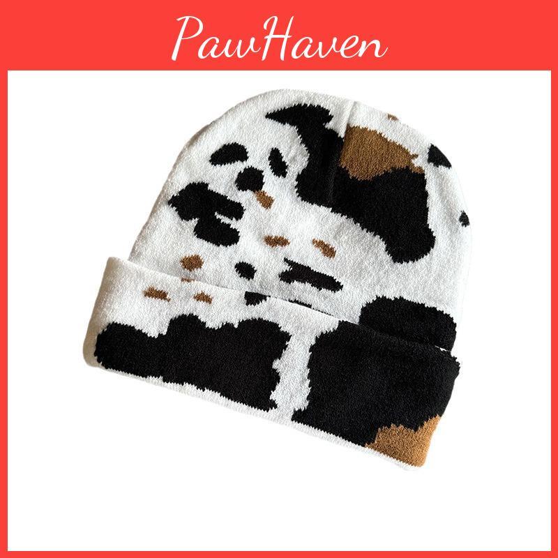 Cow Pattern Knit Cap For Winter Fashion Unisex Cozy Autumn Headwear