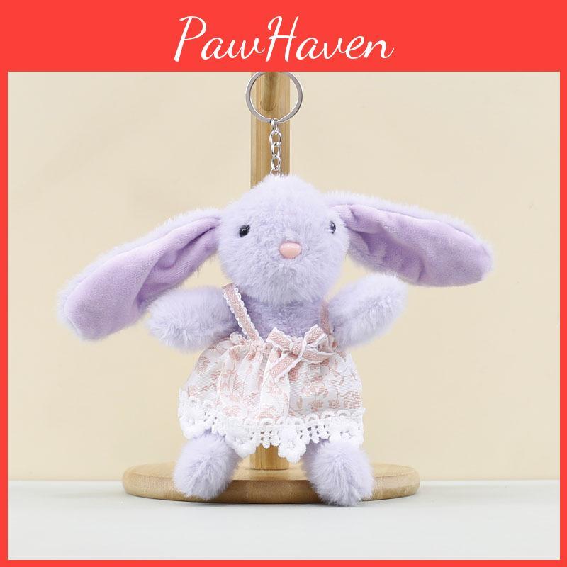 This plush bunny keychain features a charming floral dress design, crafted from soft short-pile plush with PP cotton filling for a cuddly feel.It offers durable construction and vibrant colors like white, purple, gray, light brown, and pink. Ideal for decorating bags or keys, it adds a playful touch to everyday items. Wipe clean with a damp cloth to maintain its appearance.