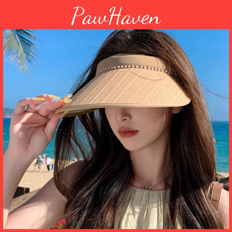 This summer sun shade hat features a large brim and pearl accents, providing effective sun protection and sunshade. Crafted from durable polyester fabric , it offers breathable comfort for outdoor activities. Ideal for beach outings, casual walks, or outdoor sports, it complements various styles with its versatile design. Wipe clean with a damp cloth to maintain its elegance.