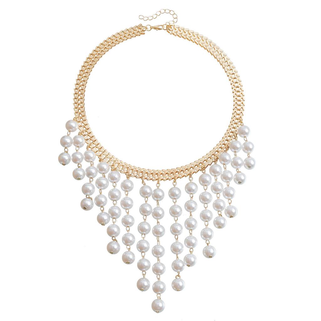 Trendige mehrlagige Perlenquastenkette mit Buchstabenanhänger