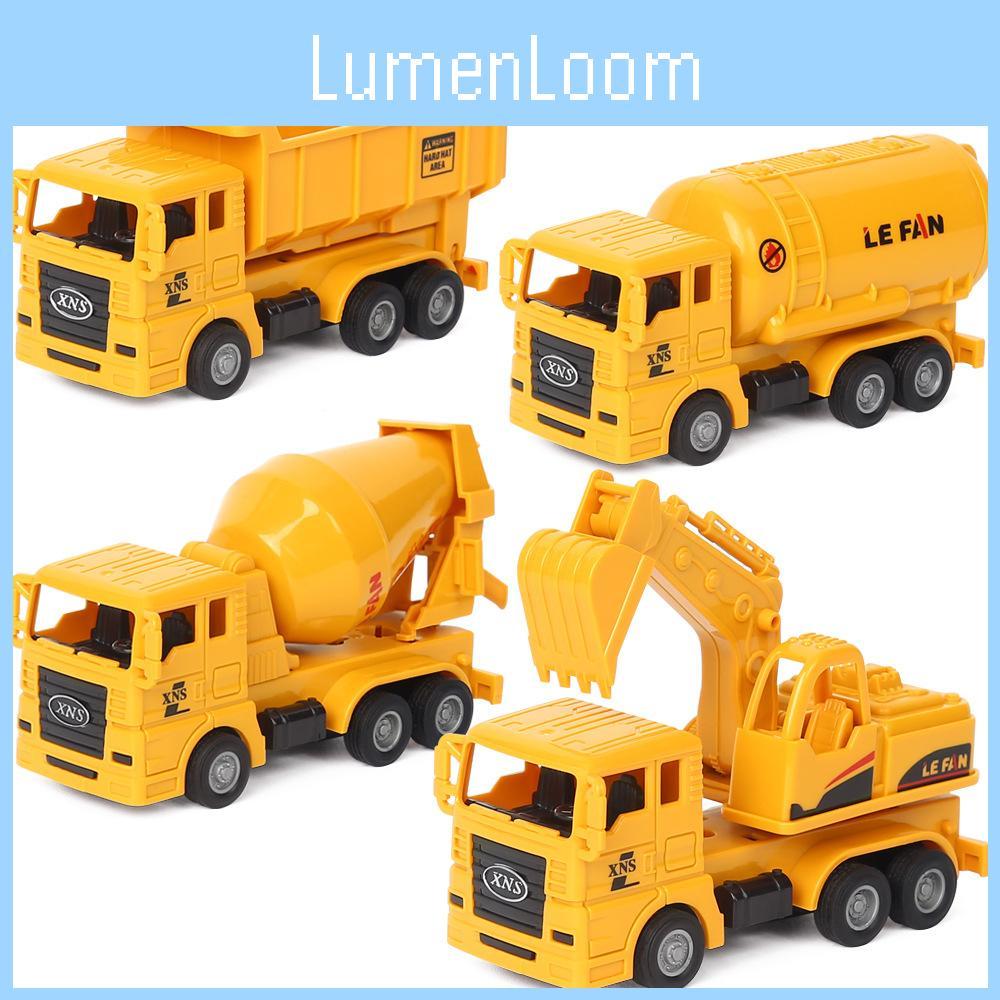 This children's toy car set features colorful, durable plastic construction with multiple movable parts and a push-and-go pull-back mechanism. The excavator, dump truck, mixer, and tanke promoting fine motor skills and imaginative play. Ideal for classroom activities or as a gift for young learners. Wipe clean with a damp cloth for maintenance.