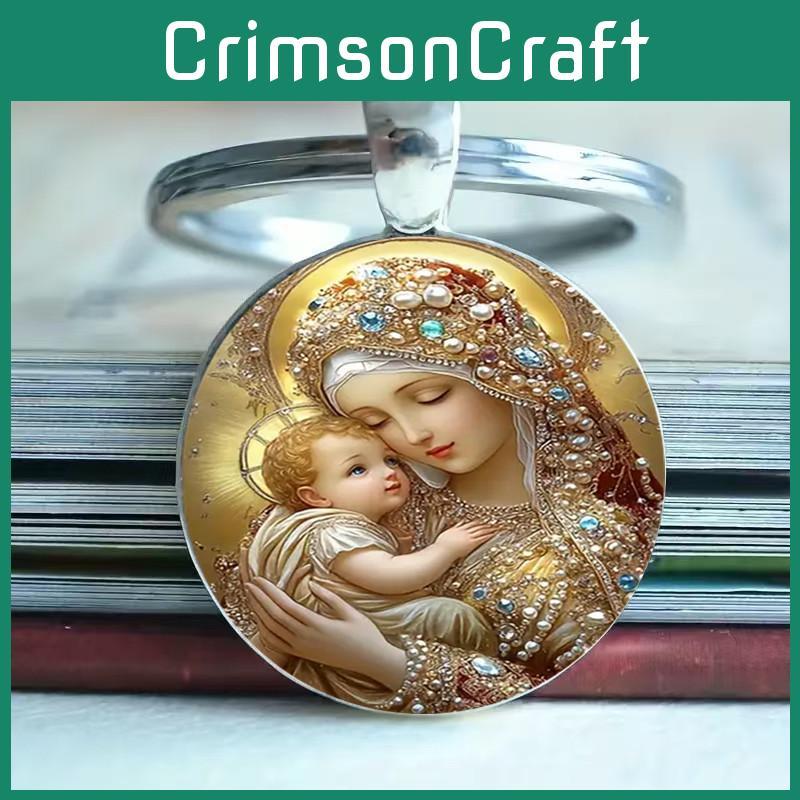 Gesegnete Jungfrau Maria Aluminium Runder Schlüsselanhänger Geschenk Für Religiöse Schmucksammler