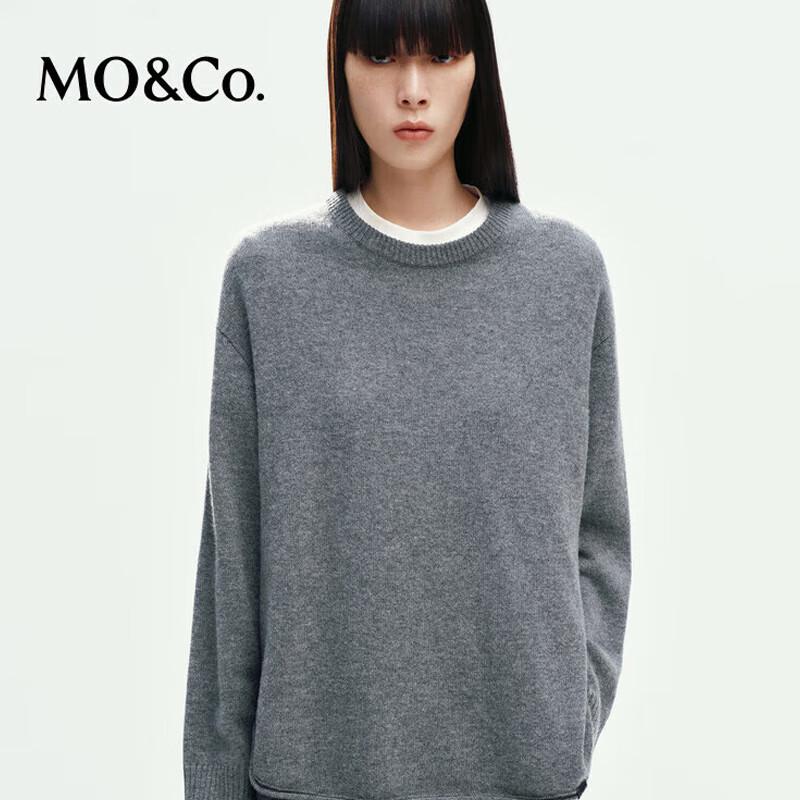 MO&Co. Women's Crew Neck Drop Shoulder Curved Hem Pullover Sweater