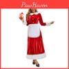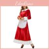 This festive adult dress features a Christmas-themed design with a playful Santa Claus motif, perfect for holiday parties and performances. Crafted from polyester fabric, it measures approximately S-XL inches in size and includes a matching apron and hat. Suitable for cosplay or holiday events, it offers comfortable, casual wear. Easy to care for, wipe clean with a damp cloth.