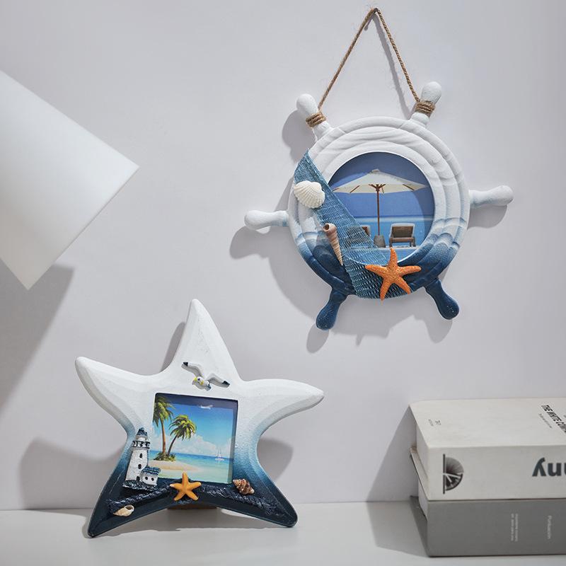 Holz Seestern Fisch Steuermann Fotorahmen im mediterranen Stil Desktop Dekoration Bar Kindergarten Fotowand Dekoration