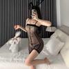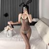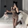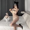 Fischernetz-Bodysuit in Übergröße: Dessous mit offenem Schritt und Reißfunktion