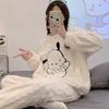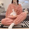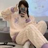 Winter-Pyjama-Set aus Korallenfleece für Damen: Niedlich, Verdickt, Samtgefüttert, Langärmlig, Lockere Flanell-Homewear, Draußen tragbar