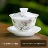140ml Weißer Jade Porzellan Handbemaltes Gaiwan Antike Tee-Terrine Teeschale mit Deckel Set Teezubereitungsdeckelschale Cha Zubehör Geschenk