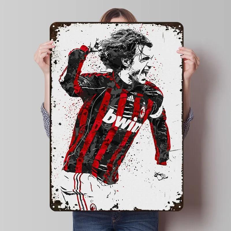 Paolo Maldini Marmorkunst Poster Fußballspieler Metallschilder Badezimmerdeko Kundenspezifisches Blechschild für Wandkunstdekoration Man Cave