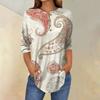 Damenmode Lässig Dreiviertelärmel Blumendruck Rundhals T-Shirt Top