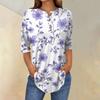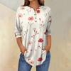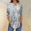 Damenmode Lässig Dreiviertelärmel Blumendruck Rundhals T-Shirt Top
