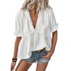 Womens Summer Casual Loose Blouses V-Neck Puff Sleeve Shirt