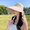 This womens wide-brim sun protection hat features a polyester and cotton blend, measuring approximately polyester and cotton, designed for outdoor leisure. Its large brim and neck guard provide effective sun shielding, while breathable, lightweight materials ensure comfort during spring and summer activities. Suitable for outdoor walks, gardening, or casual outings, its easy to maintain by wiping clean with a damp cloth.