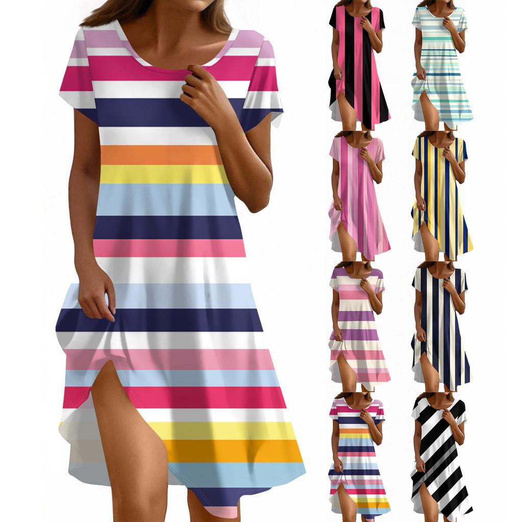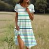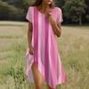 Women's Fashionable Casual V-neck Short-sleeved Tie Striped Print Dress
