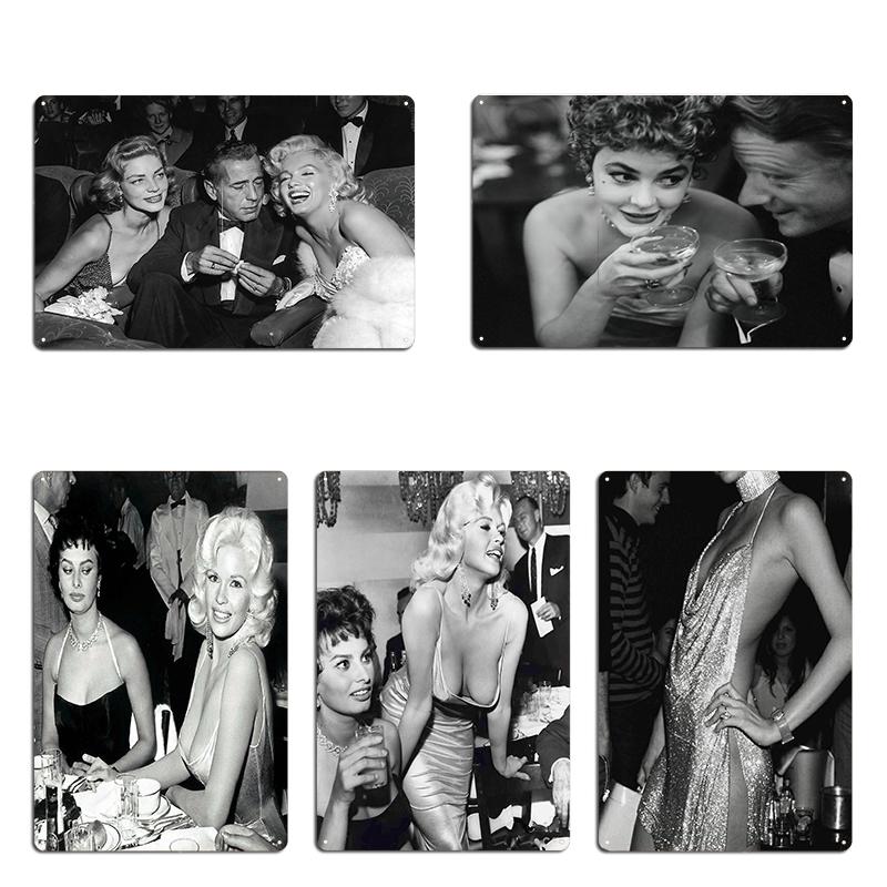Sophia Loren Champagner Einschenken Schwarzweiß Vintage Wandkunst Metallschild Club Zuhause Sophia Loren Blechschild Poster