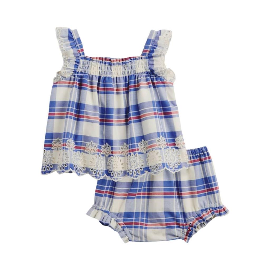 The buttonless design eliminates the hassle of fastening and unfastening, and the top with elastic in the front and back makes it easy to put on and take off. The shorts have ruffles around the thighs, creating a cute, baby-like look. They are lined and not see-through, so you can wear them on their own with confidence. They are easy to coordinate with other items, whether worn as a set or individually. The ivory-based check pattern is softer than white, giving it a natural look and making it easy to match with other items. It is easy to incorporate into patterned items even for those new to them, and pairs well with simple tops and bottoms.