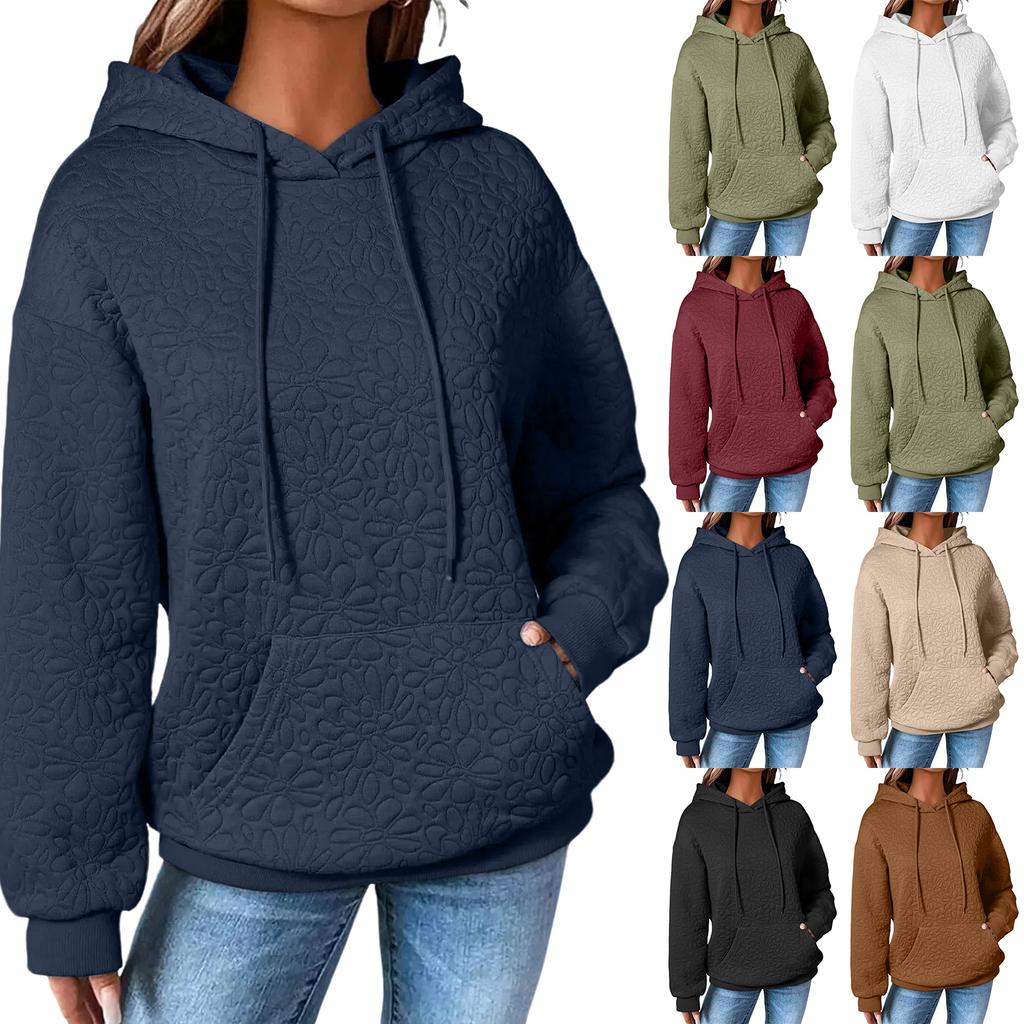 Damen Einfarbiges Modisches Kapuzen-Textur-Langarm-Top Sweatshirt