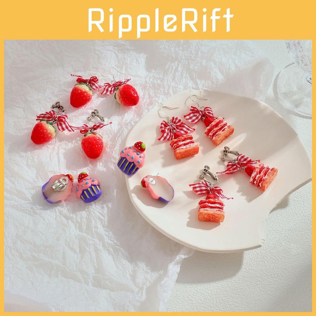 Erdbeerkuchen Ohrringe Entzückende Mädchen Süßes Schleifendesign Nicht durchgestochene Ohrclips