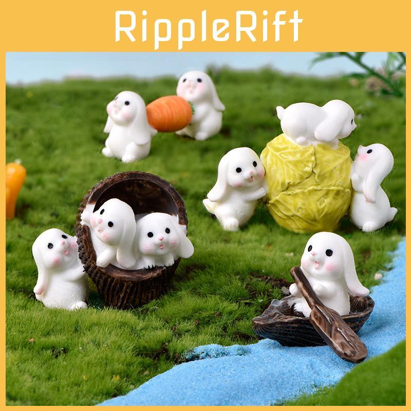 Entzückende Harz-Cartoon-Kaninchen-Miniaturfiguren für Gartendekoration und Wohnakzente