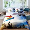 Ski Sport Bettbezug Set Doppelgröße Wintersport Skifahren Bettwäschesets Schneebirgenlandschaft Bettdeckenbezug für Jungen Mädchen