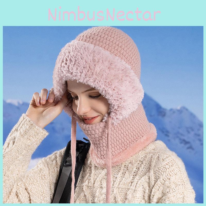 Knitted Winter Hat For Women With Neck Covering And Windproof Features For Outdoor Cycling