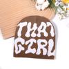This knit hat features a round crown design with a seamless, brimless style, crafted entirely from acrylic for warmth and durability. Measuring approximately 8 inches in diameter, it includes trendy alphabet embroidery, supporting a comfortable fit suitable for autumn and winter. Ideal for streetwear, casual outings, or outdoor activities, it offers moisture resistance and easy maintenance by wiping with a damp cloth.