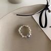 Eleganter Verstellbarer Perlen- und Silberner Geometrischer Ring für Damen Einzigartiges Design Accessoire