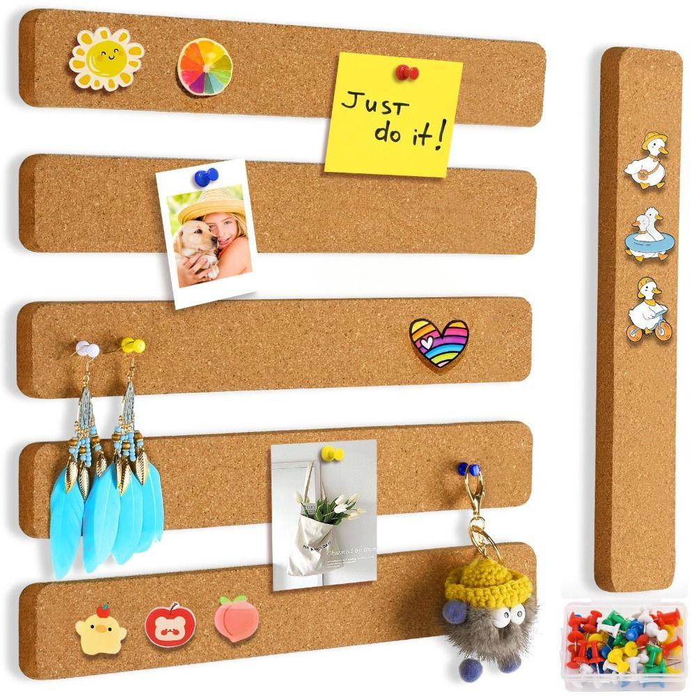 4.The package contains: 6 soft wooden bulletin boards, and one box contains 50 multi-color thumb nails, which can meet your daily needs. Durable and lightweight. The adhesive is super strong and can be attached to walls.