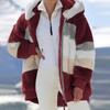 Damenmode Spleißen Winter Lose Plüsch Langarm Reißverschlusstasche Kapuzenmantel