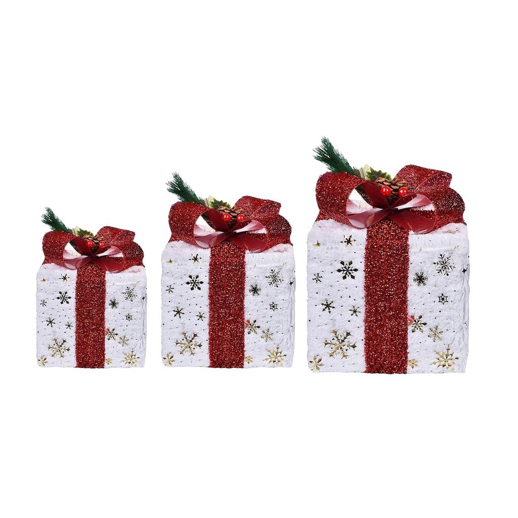 Weihnachtsbeleuchtung Geschenkbox 3-teiliges Set, Dekorative LED-Außenbeleuchtung Geschenkbox, Goldene Schneeflocken-Geschenkbox, Plug-in Weihnachtsdekoration