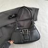 Chic Vintage Style Black Pu Leather Shoulder Bag For Women With Unique Crescent Shape