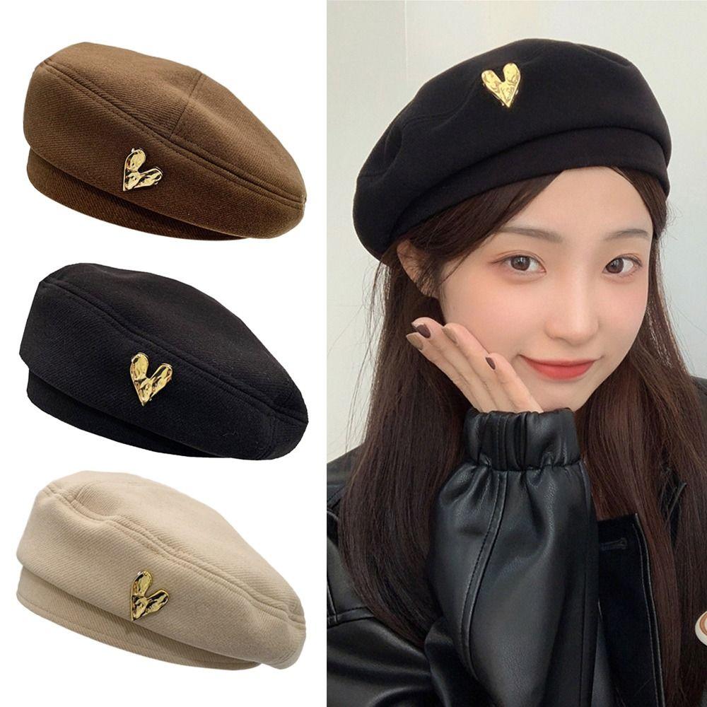 Atmungsaktive Vintage Herz Baskenmützen Einfarbig Liebe Malermütze Lässige Damen Strickmütze