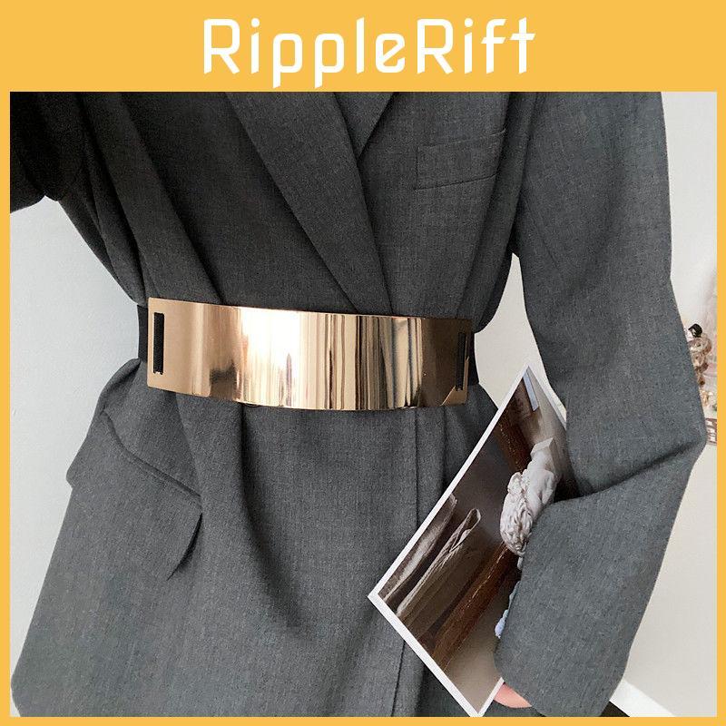 Stylish Metal Elastic Wide Waist Belt For Women With Shiny Surface Fashion Accessory